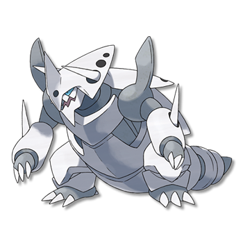 Its iron horns grow longer a little at a time. They are used to determine the Aggron's age. The gouges in its armor are worn with pride as mementos from battles.