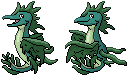 Drakella are outgoing, friendly Pokémon that have been known to snare divers as a prank. They hide in kelp forests and then dart out to snatch prey or to play with other Drakella.