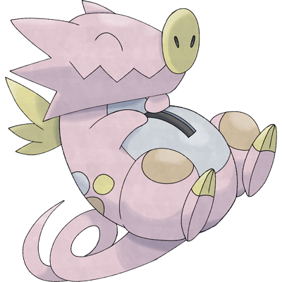 Iggydrake use their curly, flexible tails to scoop up coins and other round, shiny objects, then deposit their treasures into their belly pouch. They are usually very friendly Pokémon, but quickly become aggressive if anyone tries to touch their fragile bellies.