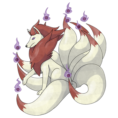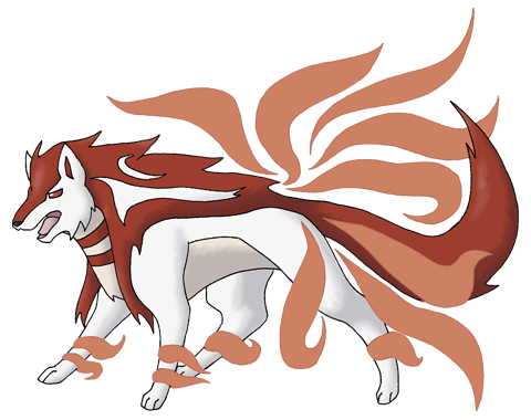 - Originally an alternate Vulpix evolution. I actually like the 'ghostly tails' idea and might revisit it someday, although it'd probably be better if all nine tails were like that. I don't know what's going on with the white marks on its mane; they don't really seem necessary.
