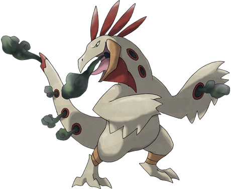 Rancilisk hunt by spewing gas out of their vents and spreading it with mighty flaps of their wings. The fumes overwhelm wild Pokémon within a wide radius of the attack, and the Rancilisk can eat up all the unconscious prey at their leisure.