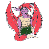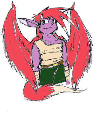 - Better. General improvement in artistic ability helped, but I think the biggest fix here was making the hair more abstract and less like some awful mullet. Unfortunately it's still too human for my tastes at this stage, and there's got to be a way to make the design less front/top-heavy without resorting to that dang tail...