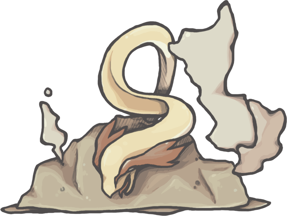 By the time Wyrmal evolve into Ventorm, the sediment they collect from the hydrothermal vents has formed into an incredibly strong shell. The soft bodies of the Ventorm become one with the rock-like shells, much like the way a turtle's shell works. They can retract their long necks back into themselves and into the shell for protection; while their rock bases prevent them from moving from the one spot in which they settle, Ventorm can strike out of and pull into their shells incredibly quickly, more than fast enough to catch most prey or avoid most attacks.